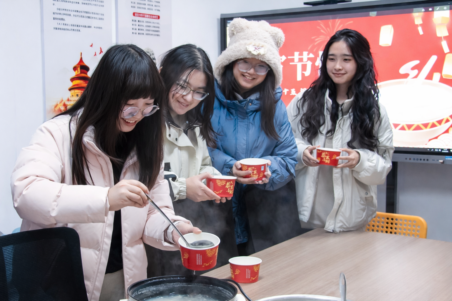 “相比往年,今年开学格外早,这是我第一次在学校过元宵节。”来自学院2022级大四学生万同学感慨道,“原本还觉得遗憾,想到能和老师、同学们一起煮汤圆、看晚会,不仅体验到了家一般的温暖,也是真正的团圆了。作为即将毕业的大四学生,这份特殊的元宵记忆,将成为我大学时光里最珍贵的回忆。”