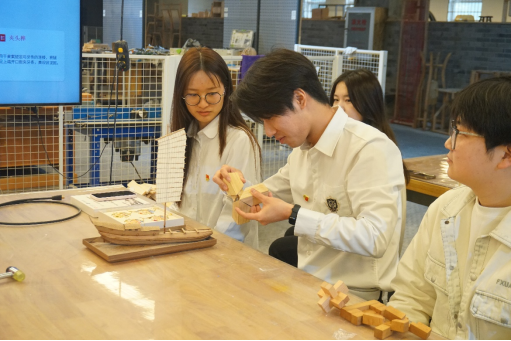 为深入学习贯彻习近平新时代中国特色社会主义思想,推动党建与专业学习、文化传承深度融合,3月31日中午,学院研究生党支部在学院一楼实验室木工坊,成功举办了一场以“榫卯新语·匠心筑梦”为主题的党日活动。活动紧密围绕“用设计语言讲好中国故事——从榫卯智慧到时代匠心”的主题,将理论研学、动手实践与创意共创相结合,引导党员同志深刻感悟传统文化精髓,强化专业担当与使命情怀。