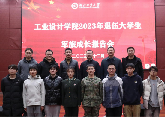 为深化大学生对参军入伍相关政策及国防知识的了解,鼓励青年大学生积极投身国防建设,2023年12月27日晚,工业设计学院2023年退伍大学生军旅成长报告会在图书馆报告厅举行。校武装部副部长闫锋、征兵办李刚以及学工办全体辅导员参加报告会。报告会由学院党委副书记侯国强主持。