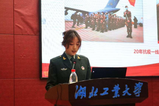学院两位退伍大学生黄剑霏、高旭阳为全体学生作军旅成长报告。他们以饱满的精神状态和真挚的情感,讲述了自己在部队的成长和历练,分享了他们在军营中丰富多彩的训练活动,展现出对军旅生活的无限眷恋和对未来的坚定信念,让在场的每一个人都感受到了军人的坚韧和青春的力量。黄剑霏同学感慨道:“当兵辛苦两年,不当兵后悔一辈子”,两年的军旅生涯,虽苦犹荣。她始终铭记,是部队的培育之恩,使她得以蜕变。军营的生活与工作习惯,早已融入她的血脉之中,成为她生命中不可或缺的精神品质。