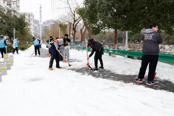 22日下午,学院学工办又号召已返校的学生党员、入党积极分子和志愿者对东苑学生社区周边的道路进行了铲雪除冰和道路清理活动。