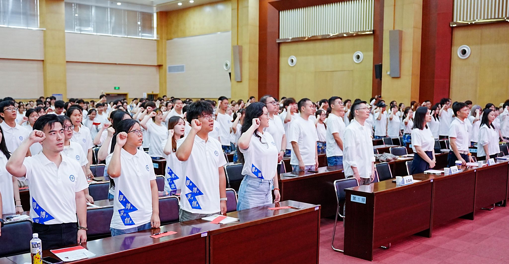 下午3时,开学典礼在庄严雄壮的国歌声中拉开序幕,全体师生肃立,齐唱国歌。