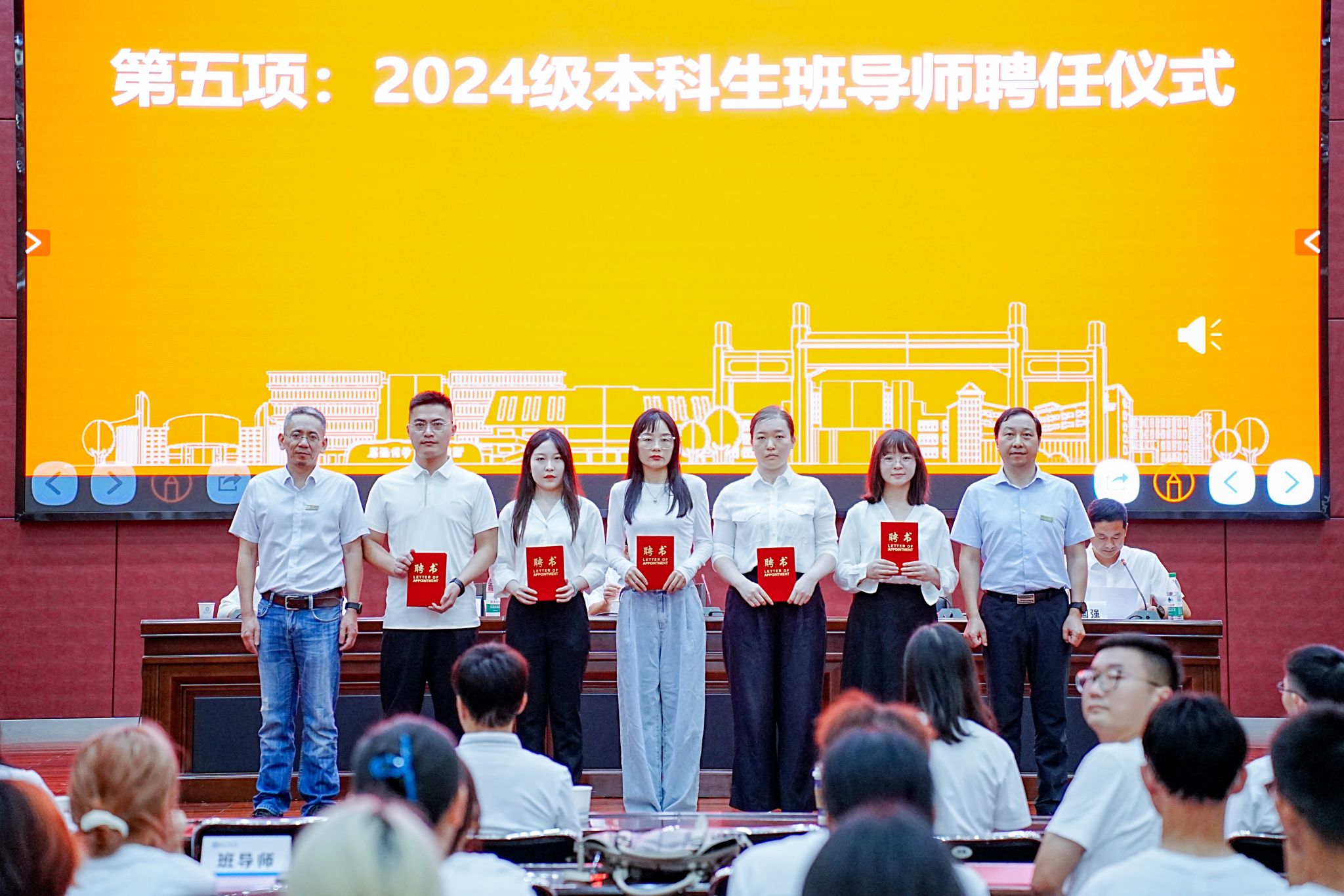 王地国、邓卫斌共同为2024级新生班导师颁发聘书,期许班导师切实扛起班导师工作职责,以实际行动践行育人的责任与担当。