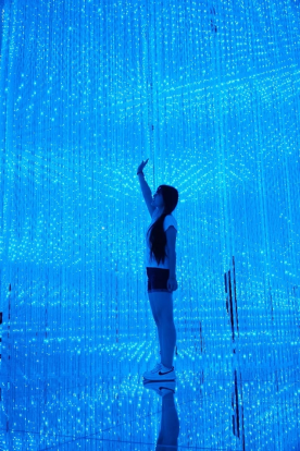 随后,师生来到了位于赤坂附近的21_21DesignSight东京设计博物馆,参观了“如果下一次灾难来临怎么办?”的设计展览,展览中展示了日本对于灾难的系统化处理方案,从灾前预报、灾难避险、灾后重建等多方面展示了日本在应对灾难的准备。同学们表示对这一领域有了更加深刻的认识和思考,对专业视野起到了很好的拓展作用。最后,师生一行来到了位于日本麻布台山的Teamlabbordless展览,体验日本最富盛名的大型媒体交互展览。
