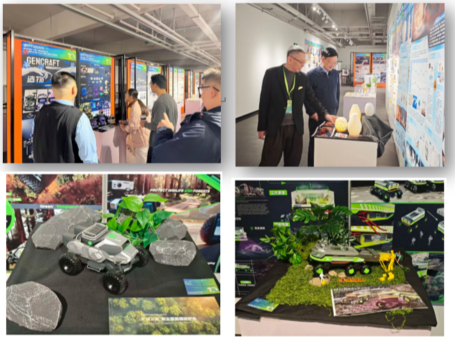 这场以“跨界共生”为核心主题的展览,与国际会议“跨学科赋能双碳目标”的主题形成深度呼应,展现了设计学子在绿色低碳转型背景下的创新思考与社会责任感。“跨界是打破学科壁垒的勇气,共生是创造协同价值的智慧。”本次展览作品充分体现了这一理念, 在智能家居方向,学生将可持续材料与物联网技术相结合,探索居家环境的低碳解决方案;未来出行作品聚焦新能源与共享模式,重新构想城市交通绿色图景;益智玩具设计融合传统工艺与现代教育理念,强调材料的可循环利用;智能交互项目则通过数字孪生等技术,可视化呈现产品全生命周期的碳足迹。