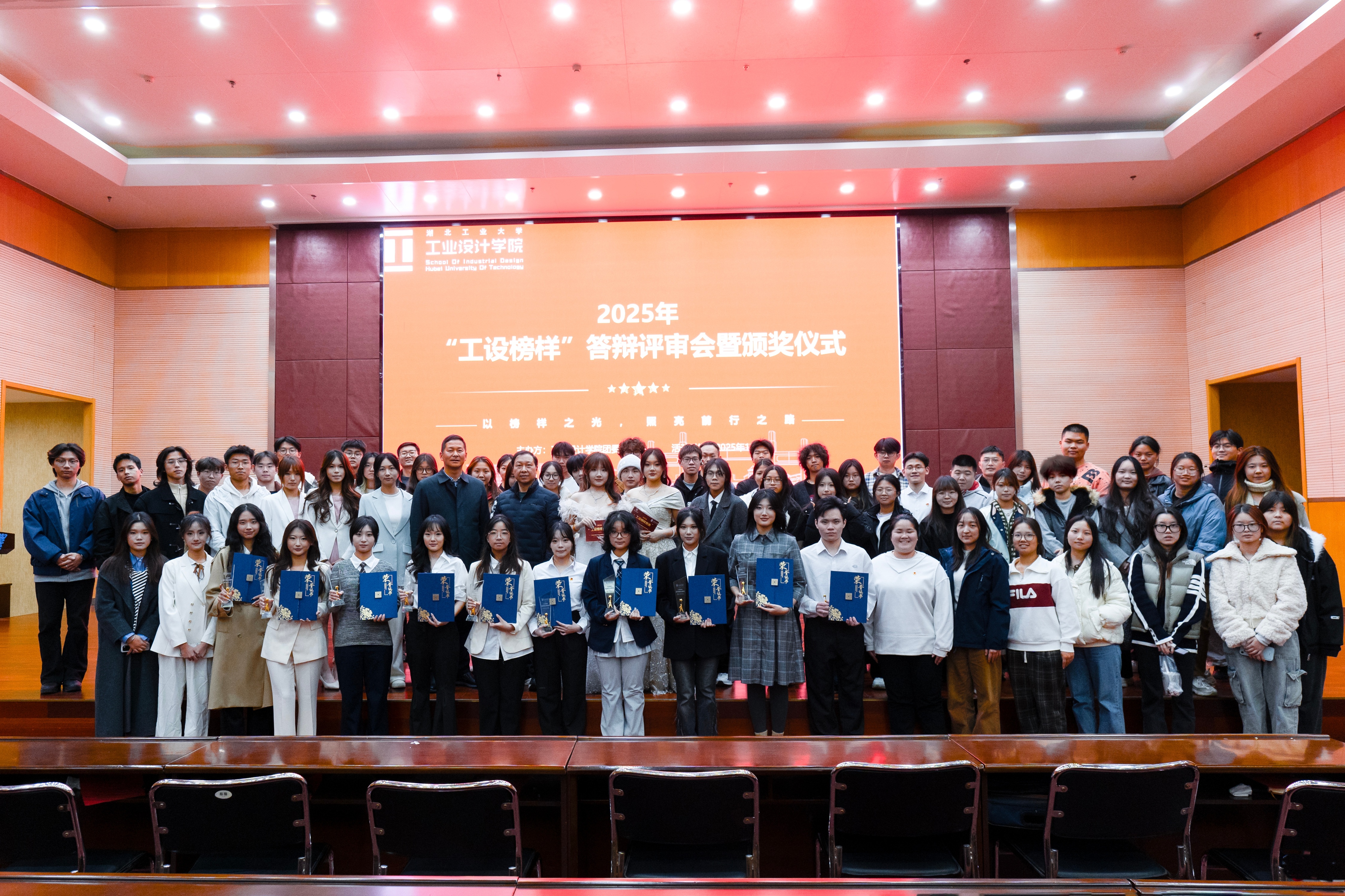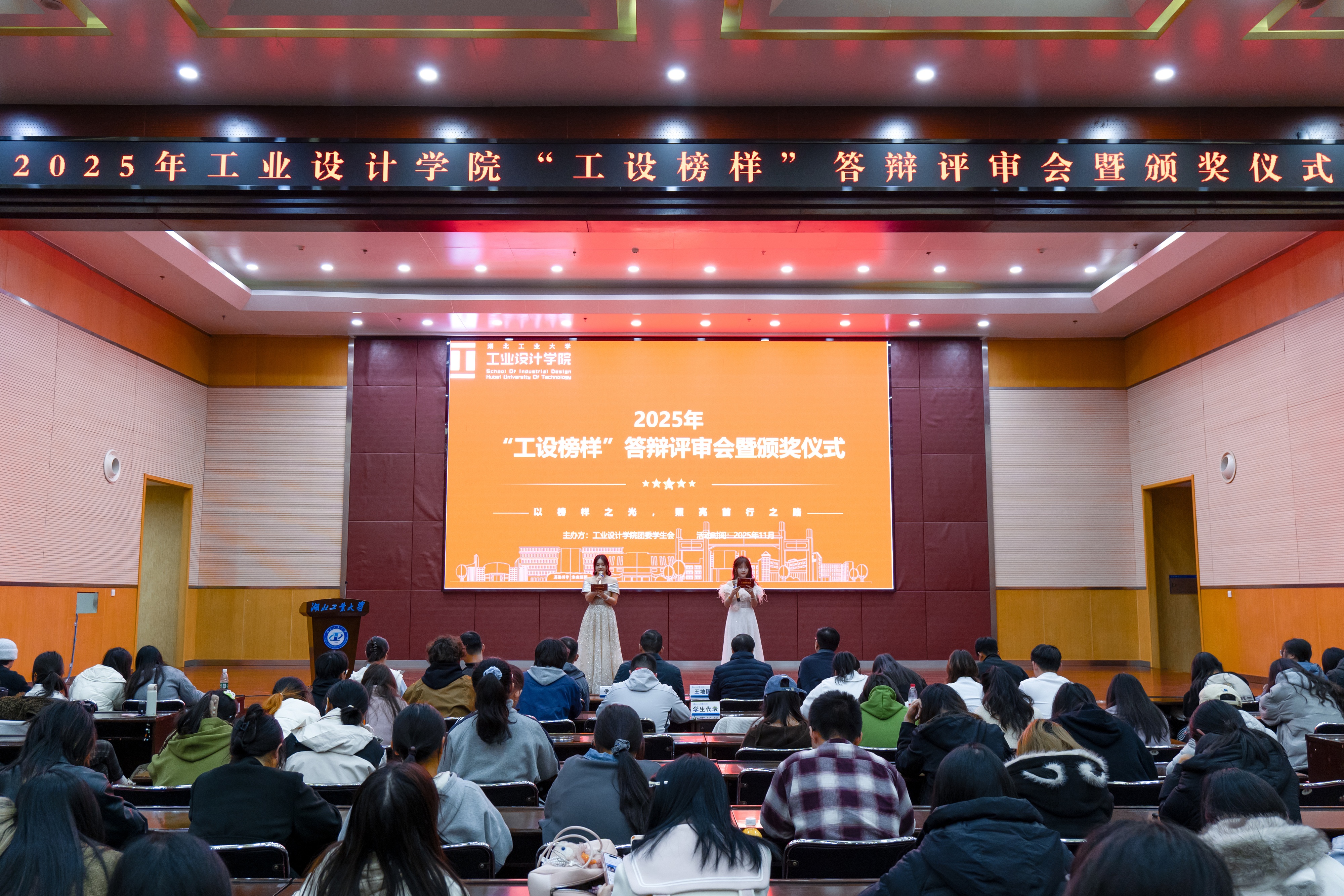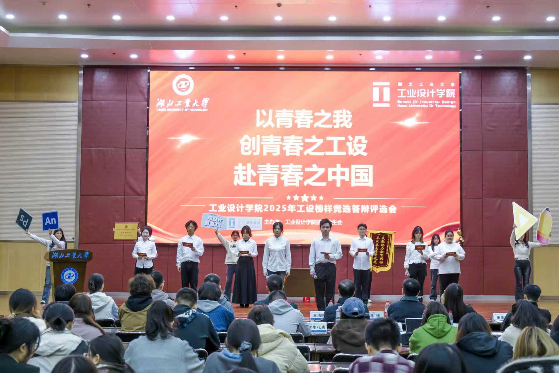 为充分发挥先进典型的示范引领作用,11月27日晚,工业设计学院在图书馆报告厅举行 “2025年工设榜样”答辩评审暨颁奖仪式。学院党委书记王地国、党委副书记侯国强、学工办专兼职辅导员、往届“工设榜样”代表及各年级学生参加答辩评审及颁奖仪式。