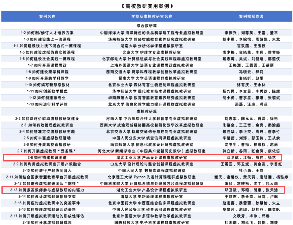 近日,我院“如何构建知识图谱”与“如何激发教师参与虚拟教研的内驱力”两项案例成功入选《高校教研实用案例》一书。该书由虚拟教研室建设项目秘书处组织、华南师范大学教育人工智能研究院团队系统编撰,并经高等教育出版社正式出版。该书作为全国教育数字化战略行动与虚拟教研室建设的重要成果汇编,凝聚了全国首批、第二批虚拟教研室试点单位的智慧,共收录29个优秀案例。