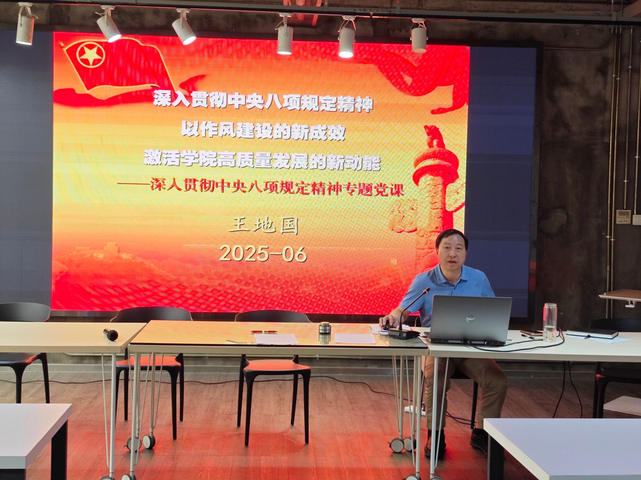 6月12日,为扎实推进深入贯彻中央八项规定精神学习教育,工业设计学院召开全院教职工大会,党委书记王地国以“深入贯彻中央八项规定精神 以作风建设新成效激活学院高质量发展新动能”为题讲授专题党课。