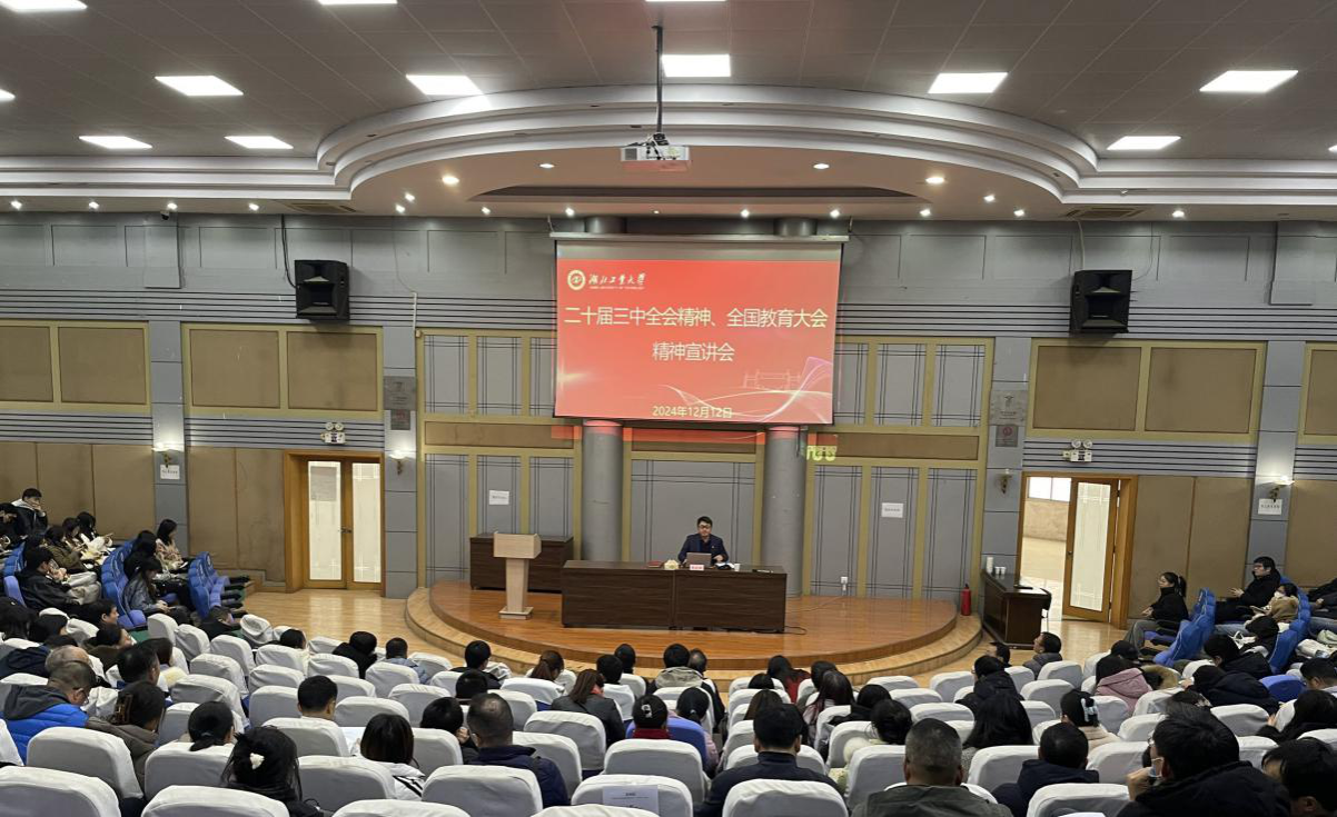 为深入学习宣传贯彻党的二十届三中全会精神,推动全会精神走深走实,12月12日,理学院举行学习宣传贯彻党的二十届三中全会精神专题宣讲,校党委常委李政颖作专题宣讲,全院教职工及学生党员代表参加了会议。